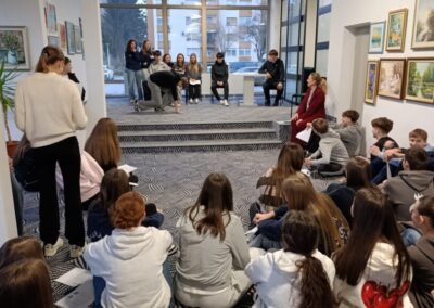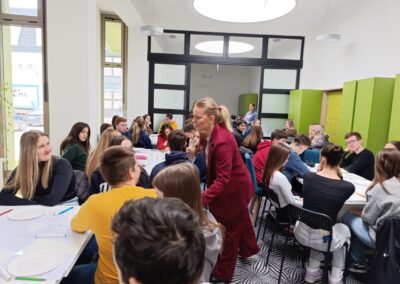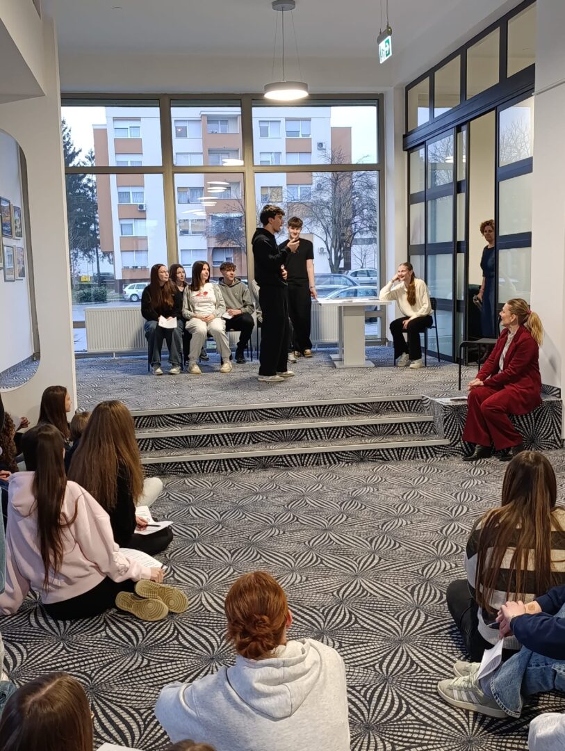 U okviru ovog projekta u školi smo ugostili pozvanu stručnjakinju socijalnu pedagoginju Martinu Kvarantan Šmitran koja je s učenicima i nastavnicima provela dvije radionice sa zajedničkim ciljem promjene perspektive, odnosno promatranja svijeta oko sebe iz drugog ugla. Martina Kvarantan Šmitran (univ.mag.paed.soc, MBA) završila je 2002. godine magistarski studij socijalne pedagogije u Zagrebu. Certificirana je TA psihoterapeutkinja (Certified Transactional Analyst, 2023.g Dublin), s certifikatom Europske asocijacije za transakcijsku analizu. Gostujuća stručnjakinja s nama je podijelila svoje dugogodišnje raznoliko profesionalno iskustvo, ali i privatno iskustvo majke četvero djece.